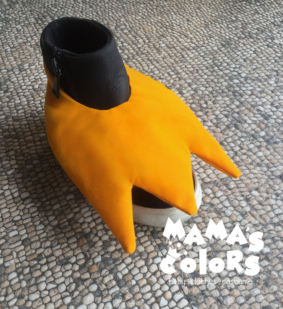 Set içerisinde şapka ve turuncu ayakkabı üzerine giyilebilen penguen ayakları da dahildir.
